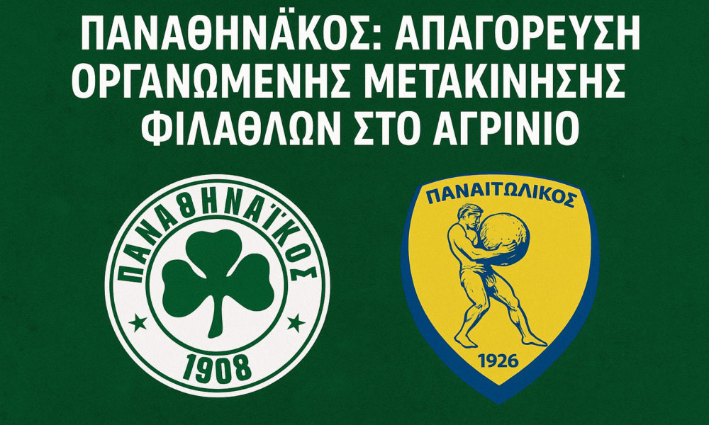 Απαγορεύτηκε η οργανωμένη μετακίνηση φιλάθλων του Παναθηναϊκού στο Αγρίνιο για το παιχνίδι απέναντι στον Παναιτωλικό.