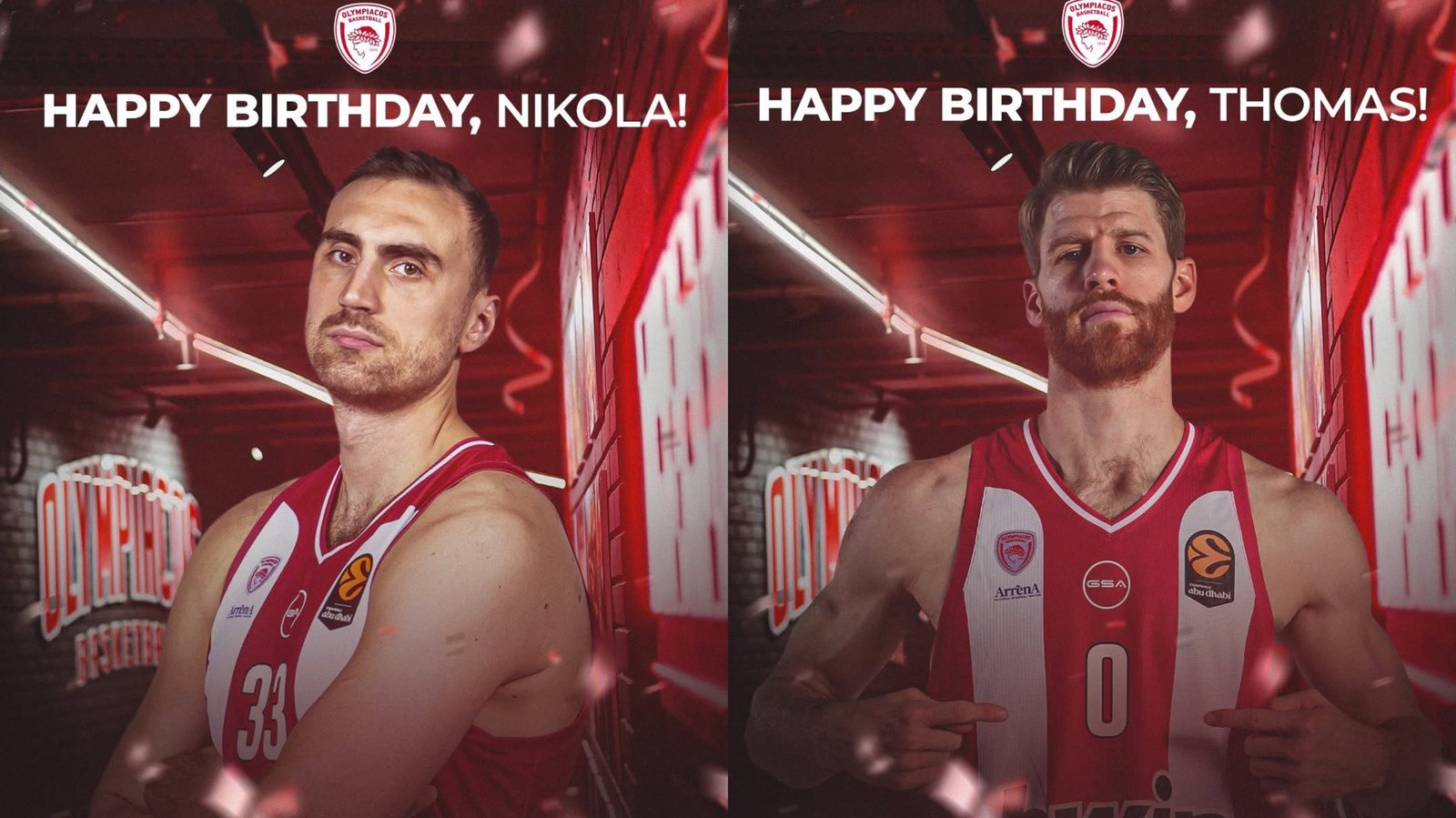 Η ΚΑΕ Ολυμπιακός ευχήθηκε χρόνια πολλά στον Νίκολα Μιλουτίνοφ και τον Τόμας Γουόκαπ, που έχουν σήμερα τα γενέθλιά τους, με τον σύλλογο να εκφράζει δημόσια τις ευχές του προς τους δύο καλαθοσφαιριστές.