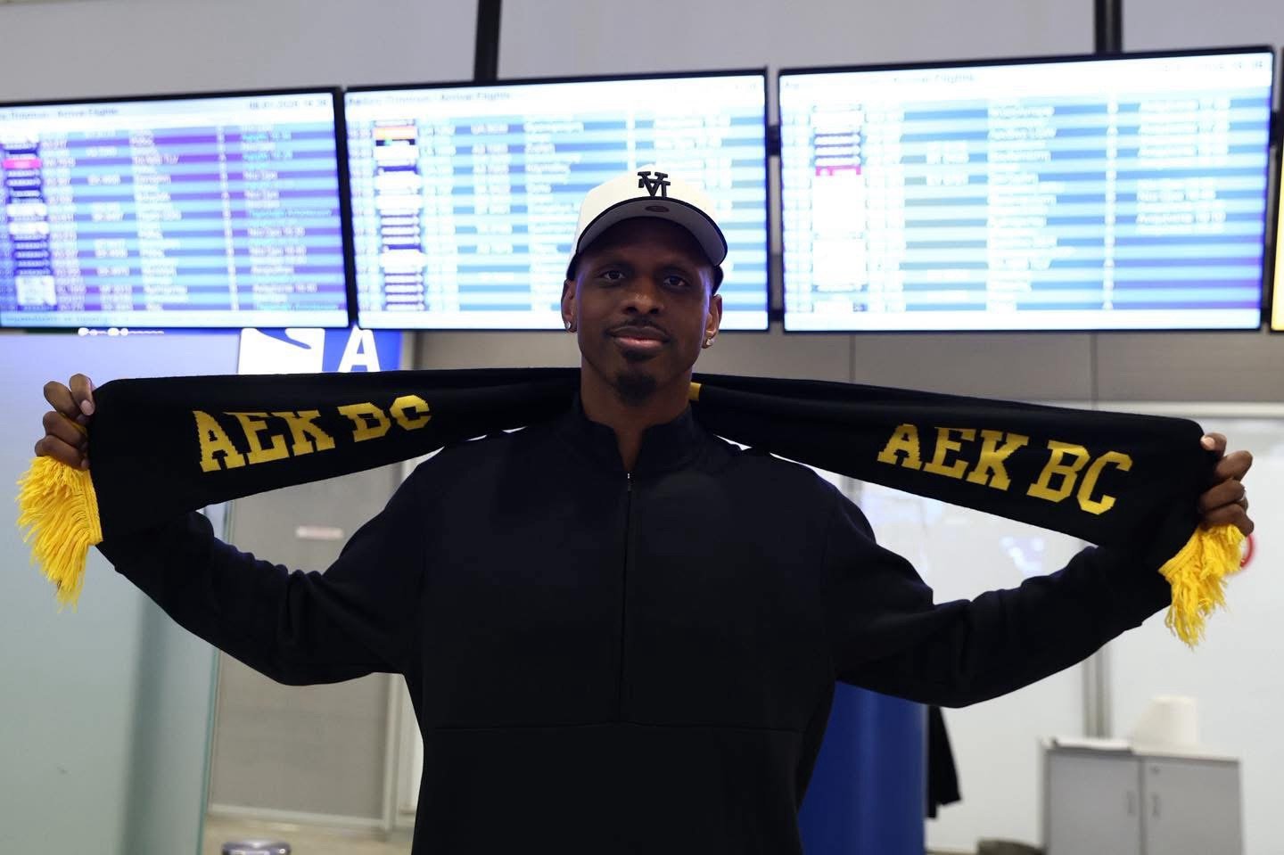 Ο νέος παίκτης της ΑΕΚ BC αφίχθη το βράδυ στο αεροδρόμιο «Ελευθέριος Βενιζέλος», όπου τον υποδέχθηκαν εκπρόσωποι της κιτρινόμαυρης ΚΑΕ. Συγκεκριμένα, παρόντες ήταν ο Team Manager της ομάδας, Ηλίας Κέκος, ο Assistant Team Manager, Άκης Καλλινικίδης, καθώς και ο Διευθυντής Επικοινωνίας και ΜΜΕ, Γιώργος Νικολάου.