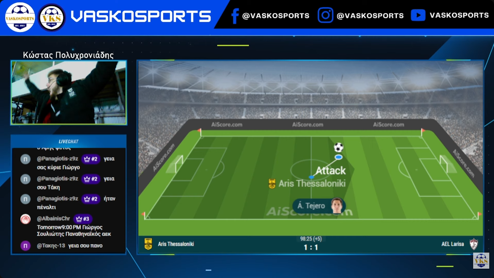 SUPERLEAGUE Τα… ουρλιαχτά στο 2-1 του Άρη! (vid) Published 5 ημέρες ago on 30 Νοεμβρίου, 2025 By Κωνσταντίνος Πολυχρονιάδης Share Tweet Ο Κώστας Πολυχρονιάδης βρέθηκε στο «Κλ. Βικελίδης» χθες για την ζωντανή μετάδοση του αγώνα του Άρη με την ΑΕΛ, και τα… ντεσιμπέλ ανέβηκαν στη λύτρωση των Κιτρινόμαυρων…Advertisement Δείτε ΕΔΩ… Advertisement Related Topics:ΑΡΗΣ Up Next 2/2 για την Ελλάδα κόντρα σε Πορτογαλία και… διαιτησία (68-76)! Don't Miss Χιμένεθ: «Πρέπει να γίνουμε πιο πολύ του… δρόμου, “αλήτες”» Κωνσταντίνος Πολυχρονιάδης Advertisement You may like Επιστροφή στη δράση, με στόχο το 5-4! Λουτσέσκου: «Χάσαμε το πέναλτι – Αξίζαμε και πετύχαμε γκολ» Χιμένεθ: «Υπήρξε μια φάση κλειδί – Κάποιες φάσεις αδίκησαν την ομάδα μας» Click to comment Leave a Reply Ακύρωση απάντησηςΗ ηλ. διεύθυνση σας δεν δημοσιεύεται. Τα υποχρεωτικά πεδία σημειώνονται με *Σχόλιο * Όνομα * Email * Ιστότοπος Αποθήκευσε το όνομά μου, email, και τον ιστότοπο μου σε αυτόν τον πλοηγό για την επόμενη φορά που θα σχολιάσω. Latest Popular Videos ΡΟΗ49 λεπτά ago Η είσοδος του Άρη κόντρα στη Κλουζ ΑΘΛΗΜΑΤΑ2 ώρες ago Ισοπαλία (0-0) στο παγωμένο Καυτατζόγλειο ανάμεσα σε Ηρακλή και Παναιτωλικό ΑΘΛΗΜΑΤΑ13 ώρες ago Επιστροφή στη δράση, με στόχο το 5-4! ΑΘΛΗΜΑΤΑ20 ώρες ago Λουτσέσκου: «Χάσαμε το πέναλτι – Αξίζαμε και πετύχαμε γκολ» ΑΘΛΗΜΑΤΑ20 ώρες ago Χιμένεθ: «Υπήρξε μια φάση κλειδί – Κάποιες φάσεις αδίκησαν την ομάδα μας» ΒΟΛΕΪ2 ημέρες ago Ιστορική πρεμιέρα… εντός έδρας για Ολυμπιακό γυναικών στους ομίλους του CEV Champions League SUPERLEAGUE6 ημέρες ago Απλά τα πράγματα: Επιβάλλεται η νίκη! SUPERLEAGUE5 ημέρες ago Μαλεζάς: «Δεν μπήκαμε δυνατά στις μονομαχίες, άτυχοι με την κόκκινη» ΠΟΔΟΣΦΑΙΡΟ5 ημέρες ago Οι σημερινές προβλέψεις του VASKOSPORTS για τη Superleague ΑΘΛΗΜΑΤΑ2 ημέρες ago Το Λιγκ Καπ «Νίκος Σαμαράς»… δίνει τον πρώτο τίτλο στο βόλεϊ LIVE10 μήνες ago LIVE | Playoff – Playout Superleague 2 & Παναθηναϊκός – Ολυμπιακός τελικός πόλο & Superleague YOUTUBE10 μήνες ago ΜΠΑΡΤΣΕΛΟΝΑ – ΟΛΥΜΠΙΑΚΟΣ : Για το 2/2 στη διαβολοβδομάδα οι ερυθρόλευκοι LIVE10 μήνες ago LIVE | Παναθηναϊκός – Εφές από το ΟΑΚΑ για το 2/2 στη διαβολοβδομάδα LIVE10 μήνες ago LIVE | Ολυμπιακός – Παναθηναϊκός στο YouTube VASKOSPORTS BASKETBALL CHAMPIONS LEAGUE10 μήνες ago LIVE | ΑΕΚ – Ντερτόνα για το BCL από τα Άνω Λιόσια Advertisement Facebook